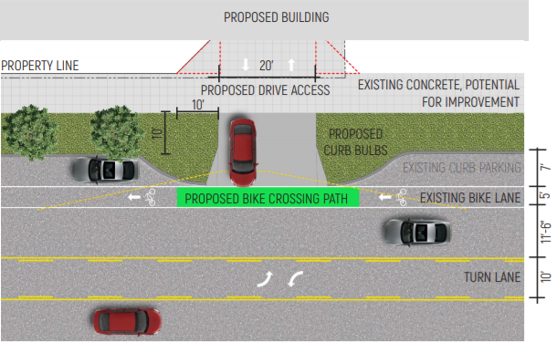 The rationale for the code departure isn’t completely unreasonable. Building an access point on the steeper N 42nd St could lead to awkward sight lines, and the project does reduce the three existing curb cuts to one. However, the 87-car garage will create a much busier curb cut for people walking and biking. It seems like a shrinking the size of the parking garage even to a moderate 0.5 parking ratio (trimming 30 parking spots) could decrease the conflicts parking motorists create with pedestrians and cyclists.