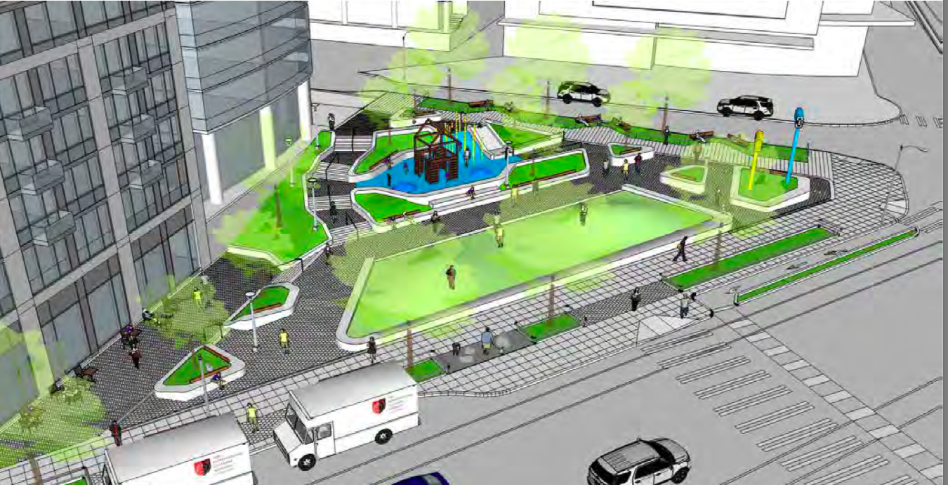 The design of the Urban Triangle Park is intended to pay homage to the neighborhood’s history.