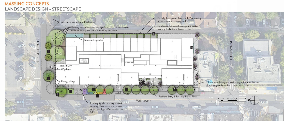 To the south, a similar debate over density has sprung up in Capitol Hill. After the QFC left in 2021, the developer Hunters Capital took over the 416 15th Ave E site with plans to build 170 apartment units stacked on top of retail. Just like in Wedgwood, the developer has opted to request departures to add an additional story in exchange for saving trees, per the tree ordinance.