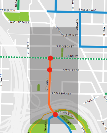 Not far from this project, another key bike segment will also stop well short of being a full connection: protected bike lanes on 12th Avenue S could bridge a gap between fair robust bicycle facilities on Broadway and the amazing Mountains-To-Sound Trail but due to traffic concerns only half of the project will be completed, south of S King Street. For that project, the chosen facility will be a two-way cycletrack which many users will likely chose not to use given the short length of the project. Another instance in which connections for all types of bicycle users are not being completed.