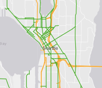 A little road context here. The highways subject to these guidelines include many highly frequented urban arterials in major population centers. The map below shows both national and state roads falling under the “national highway” descriptor in Downtown Seattle. Roads receive this classification for a host of reasons, including connections to other modes of transportation, like railways, or commercial or military installations, like seaports.