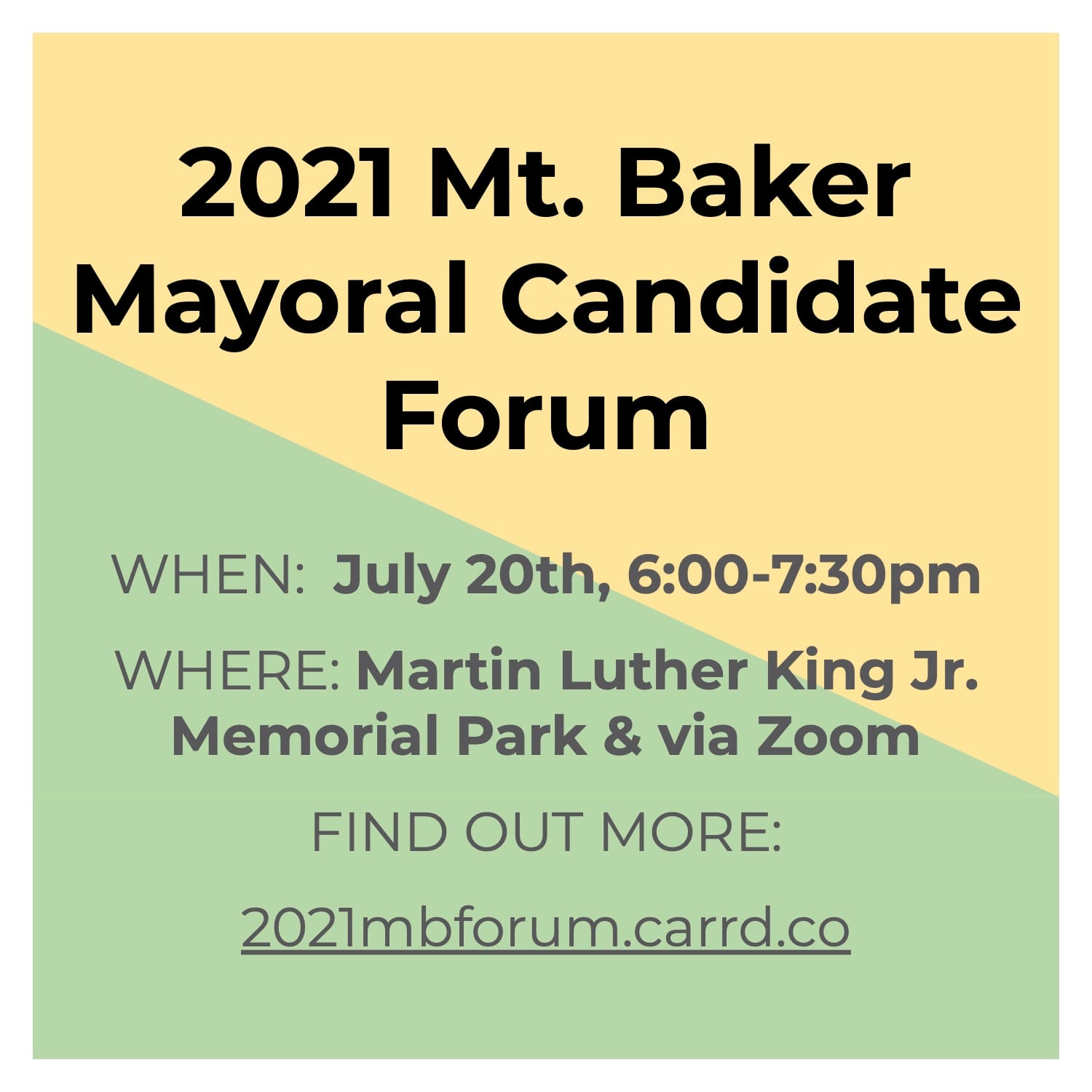 In partnership with the Mt. Baker Hub Alliance, Mt. Baker Mutual Aid, Disability Rights WA, and Mercy Housing, The Urbanist is sponsoring a mayoral forum on Tuesday, July 20th, from 6 to 7:30pm at the amphitheater of Martin Luther King Jr. Memorial Park. The event will also be broadcast on Zoom for attendees who prefer to tune in online. Either way it’s highly recommended to RSVP in advance to let the organizers know how you plan to attend and if you need any accommodations. The event will move inside to the Allen Family Center’s Community Room in case of poor weather.