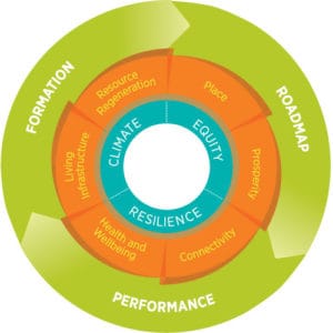 To create a better framework for creating and measuring the success of EcoDistricts, Portland based nonprofit EcoDistricts consulted with 150 advisers over a two-year process. The result was the EcoDistrict protocol.