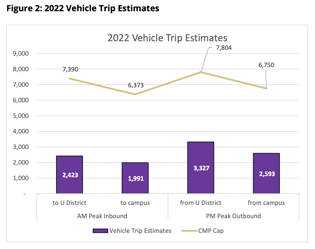 UW’s 2022 transportation survey results show them well below the cap set in the Campus Master Plan: