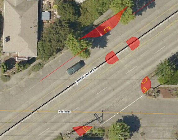 - Construction of curb extensions and a pedestrian median island across Green Lake Way N at N 48th Street.