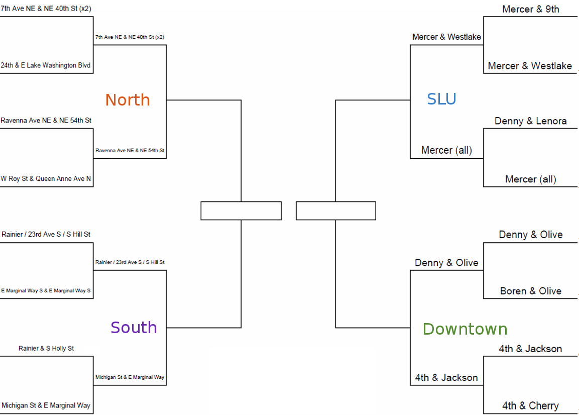 The votes have been counted and we’re down to eight possible options for the Worst Intersection in Seattle.