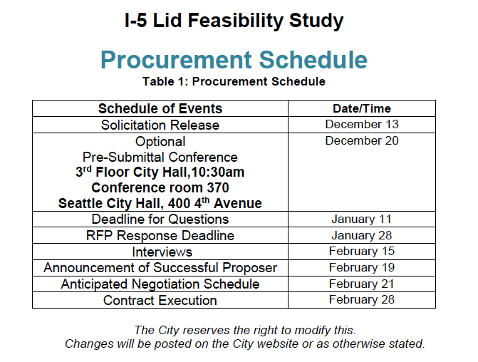 Are you part of a multi-faceted, experienced consulting team eager to tackle big urban development projects? Then be sure to check out the Request for Proposals (RFP) for the I-5 Lid Feasibility Study published on December 13th by the City of Seattle.