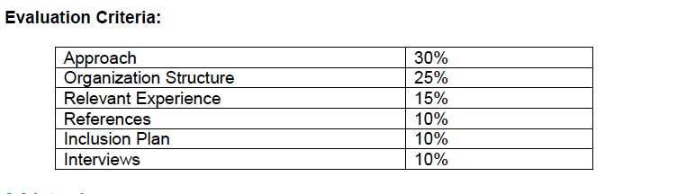 The selection process will take three weeks. Teams will be assessed based on the evaluation criteria below: