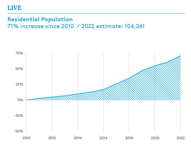 Downtown Seattle is already on solid footing when it comes to housing in the core. In the 1990’s and early 2000’s, the city encouraged downtown housing growth, which lead to its pre-pandemic urban renaissance. Downtown Seattle’s population is large, with about 100,000 people calling it home. It has even added residents since the pandemic.