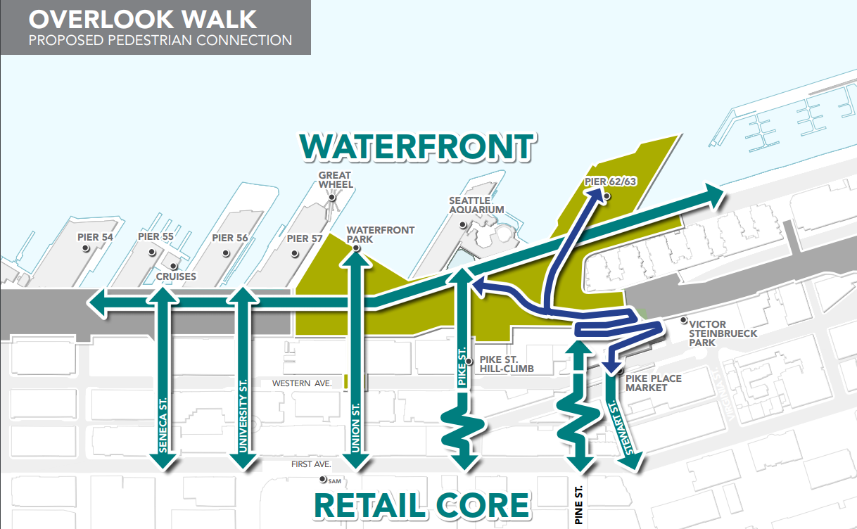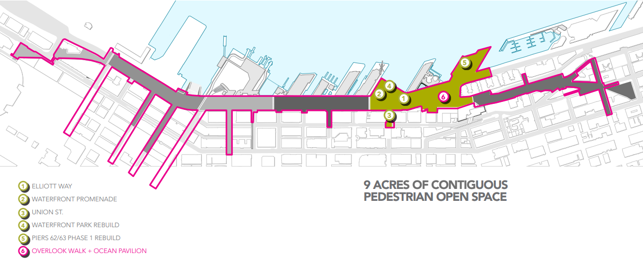 This is an ongoing project. The images above are from what is considered the 30% design with the design completion target date of 2020 and an opening date of 2022. More information about this and all the other projects planned for our waterfront can be found at Waterfront Seattle.