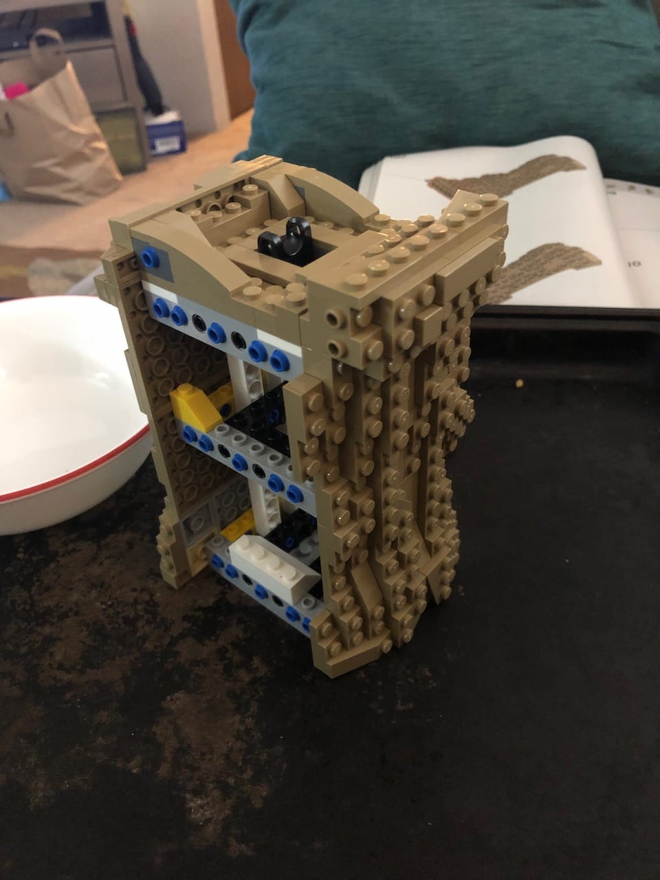 Modern Legos are a delight to build. Instead of row after row of individual gray blocks layering up to a castle, the sets are colorful, dynamic, three dimensional constructions. The Lego Grogu is essentially a statue of the Star Wars character, but building it is a lesson in squaring the circle. It starts with a rectangular frame then each side of The Child’s robe is separately built and attached vertically. The panels look like landscapes, building up angles and blocks to this organic fabric shape. There is a deep satisfaction in seeing this sculpture evolve.