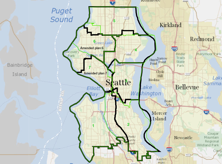 Relatedly, Crown Hill and North Greenwood are leaving D6 and joining North Seattle’s D5. Pioneer Square is leaving D7 and joining West Seattle’s D1. A chunk of South Lake Union that had been with U District in D3 is joining D7, uniting the neighborhoods south of the Montlake Cut.