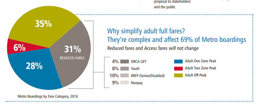 Because full fares kick in below the $50,000 household income level, many families who struggle mightily with transportation and housing costs do not qualify for LIFT. The Transit Riders Union suggests a program be devised to further lower fare, perhaps raising the limit so many families qualify. This would be make the bitter pill of higher fares off-peak easier easier to swallow. Metro hasn’t yet indicated how it’d spend projected revenue increases, but the Fare Simplification Ordinance Report did respond to equity concerns.