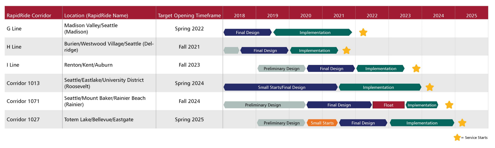 RapidRide H: initially planned for 2020 opening, actual opening date 2023