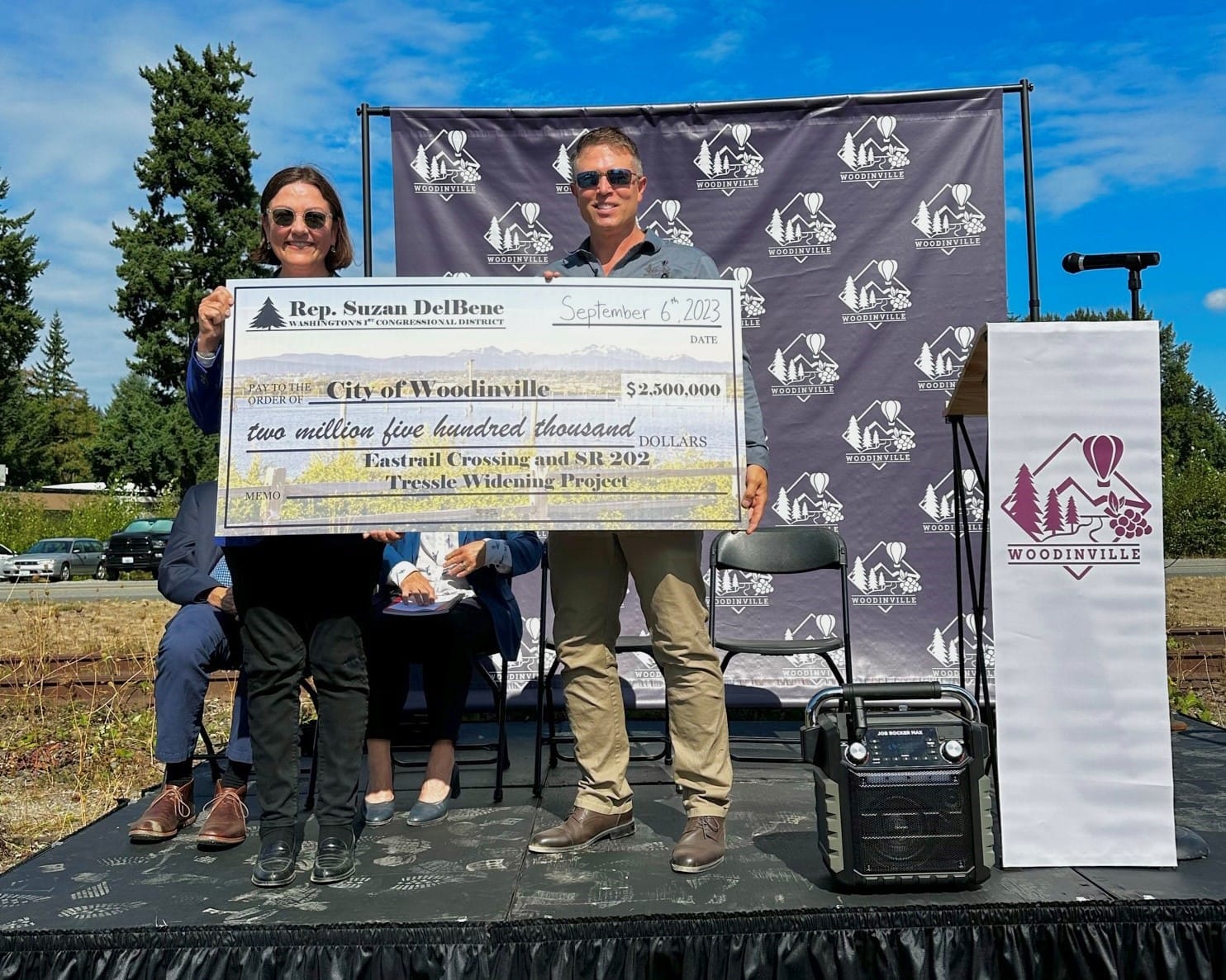 Representative DelBene came bearing a check for $2.5 million, which will add to earlier funding secured to replace an aging trestle bridge over State Route 202 in downtown Woodinville, creating a newly remade “welcome mat” into the city. The trail will also allow users to avoid the state highway below, which is being widened from four to eight lanes. The $17 million project has also received funding from the Move Ahead Washington transportation package and is expected to be fully funded soon.