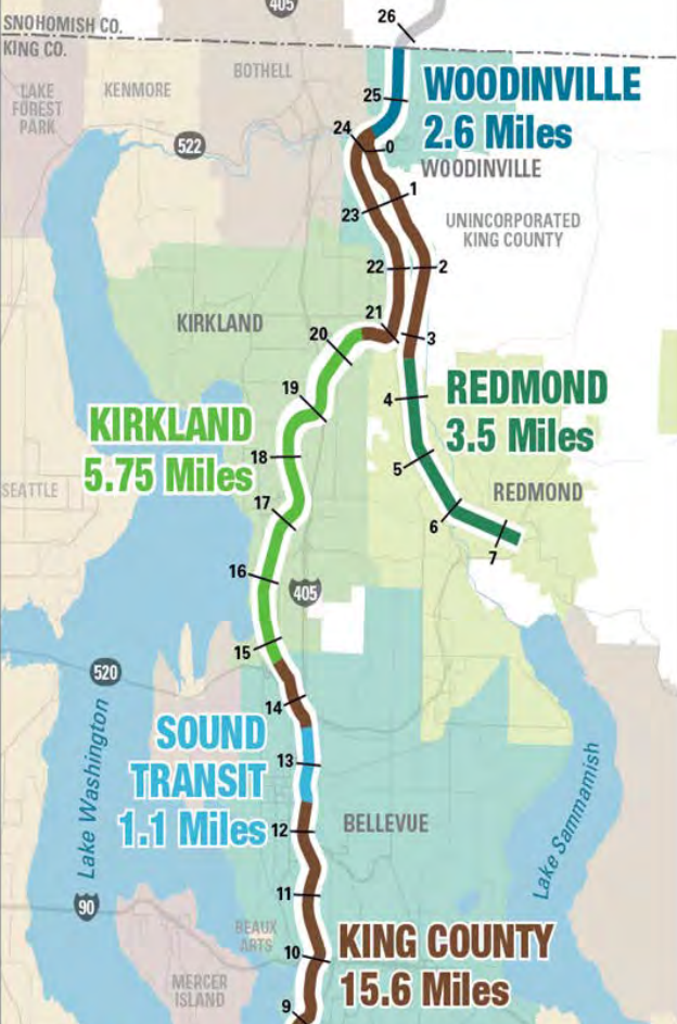 Design work on the broader trail in Woodinville is scheduled to start next year, with construction to start in 2027. In the meantime, plans to open major segments of Eastrail in Bellevue by 2025 will keep the corridor moving forward. The numerous jurisdictions in charge of different segments has led to out-of-alignment timelines, but ultimately Eastrail will come together as one unified corridor.