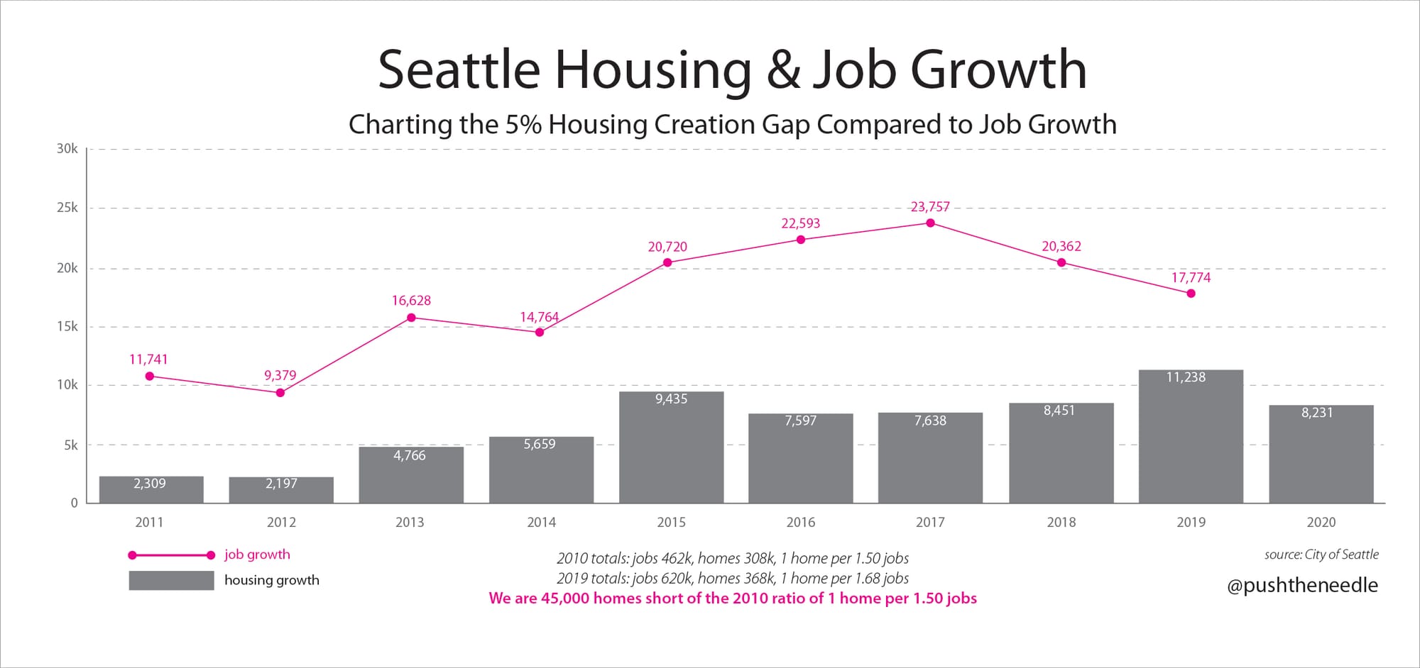 It’s no wonder politicians lobby for job growth. Job growth is a good thing. Jobs bring revenue to a city and an opportunity to provide residents the chance to participate in upward mobility — if you maintain space for everyone to live nearby and value equitable guidelines in how you grow. Political leaders work extensively and creatively to lure jobs to their city, some going as far as renaming their towns after the company they were hoping to host. But what always seems to be absent is a concurrent plan for increasing housing. Planning for jobs without homes is like luring the NHL to Seattle only to have them play in a high school arena because the city didn’t bother to build a stadium.