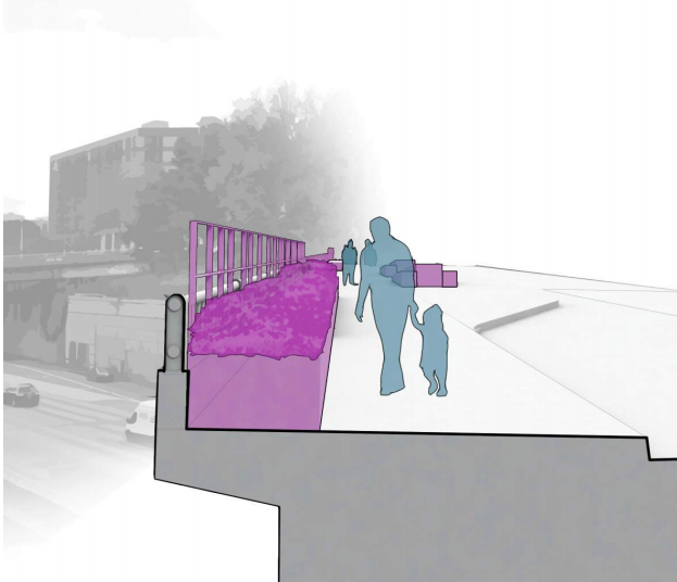 Moreover, overpasses just aren’t pleasant places to be. Design commissioners reviewed the project’s sound wall design concepts for the I-5 overpass but didn’t strike upon anything that worked particularly well.